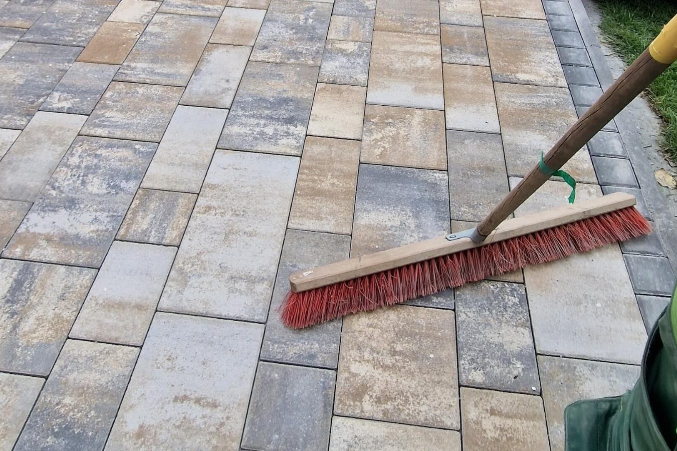Hierbei kommt Sand zum Einsatz, der in die Fugen zwischen den Pflastersteinen eingekehrt wird.
